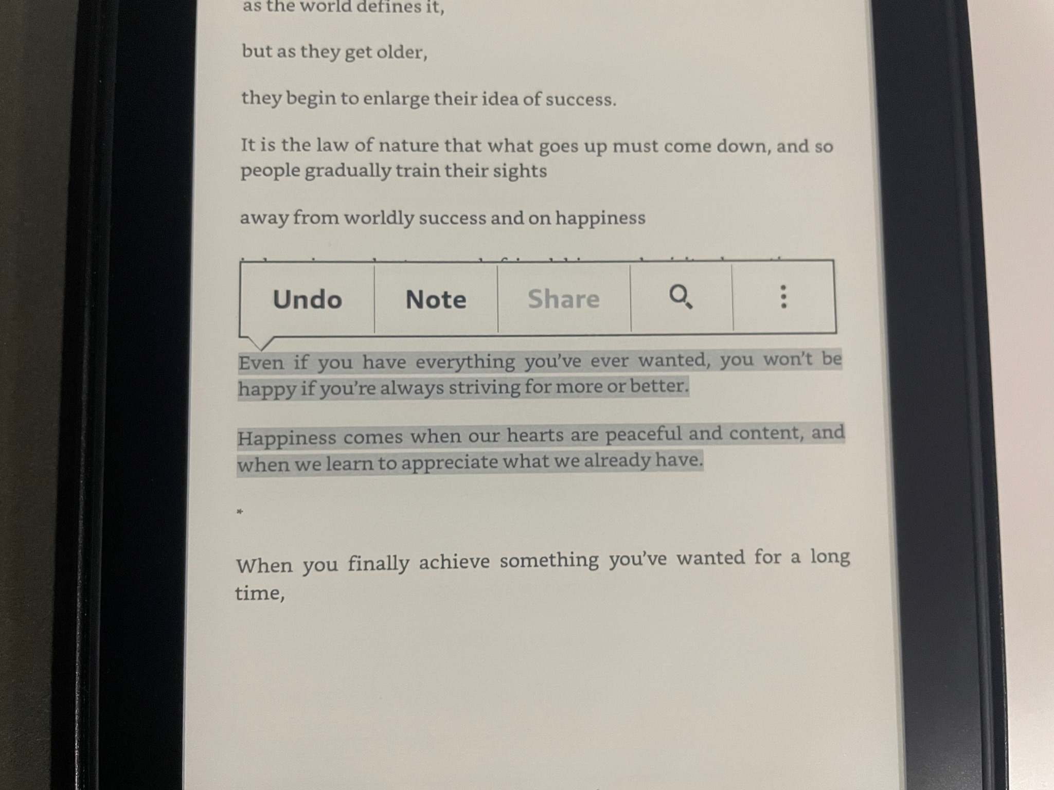 "happiness comes when our hearts are peaceful and content, and when we learn to appreciate what we already have."